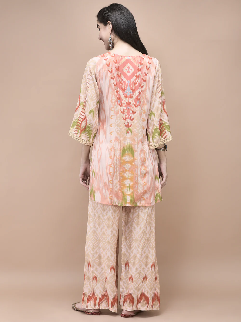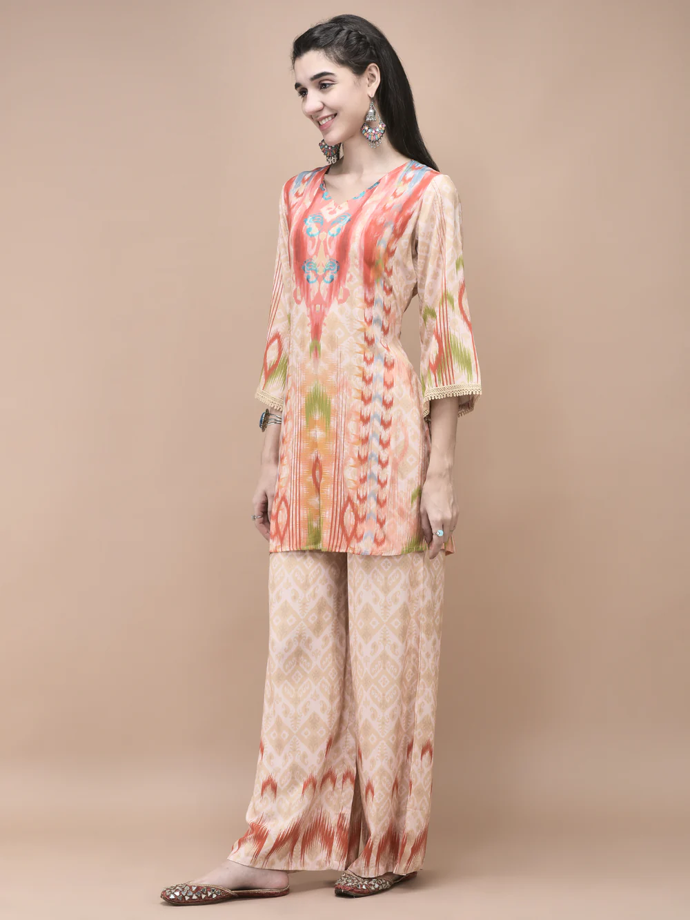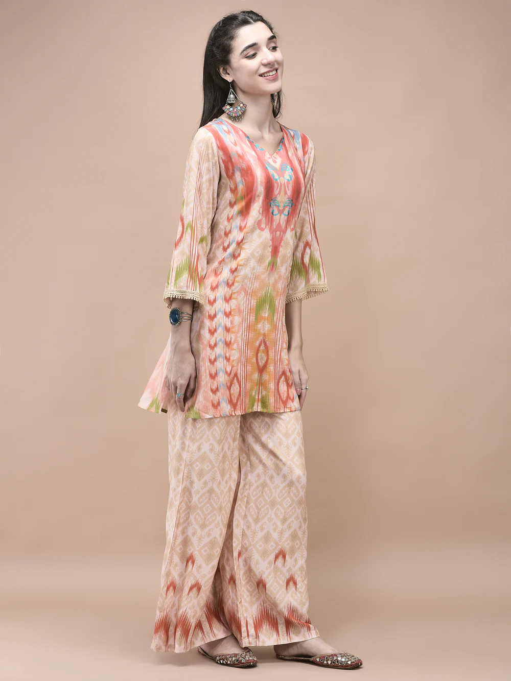 Women Liva Multicolor Ikat Print Co-Ord Set